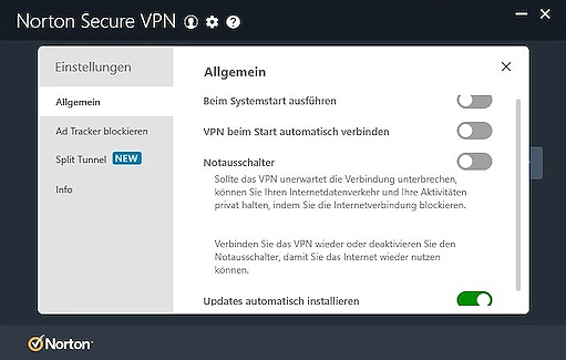Gut zu wissen: Sie können Norton Secure VPN mit nur einem Klick ein- und ausschalten. Folglich ist die Bedienung sehr einfach. Außerdem können Sie die App so einstellen, dass sie automatisch startet. Dann sind Sie immer geschützt.